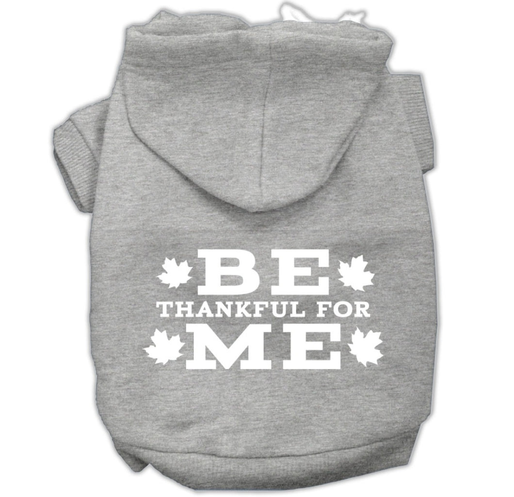 "Be Thankful for Me" Screen Print Dog Hoodie - Gray