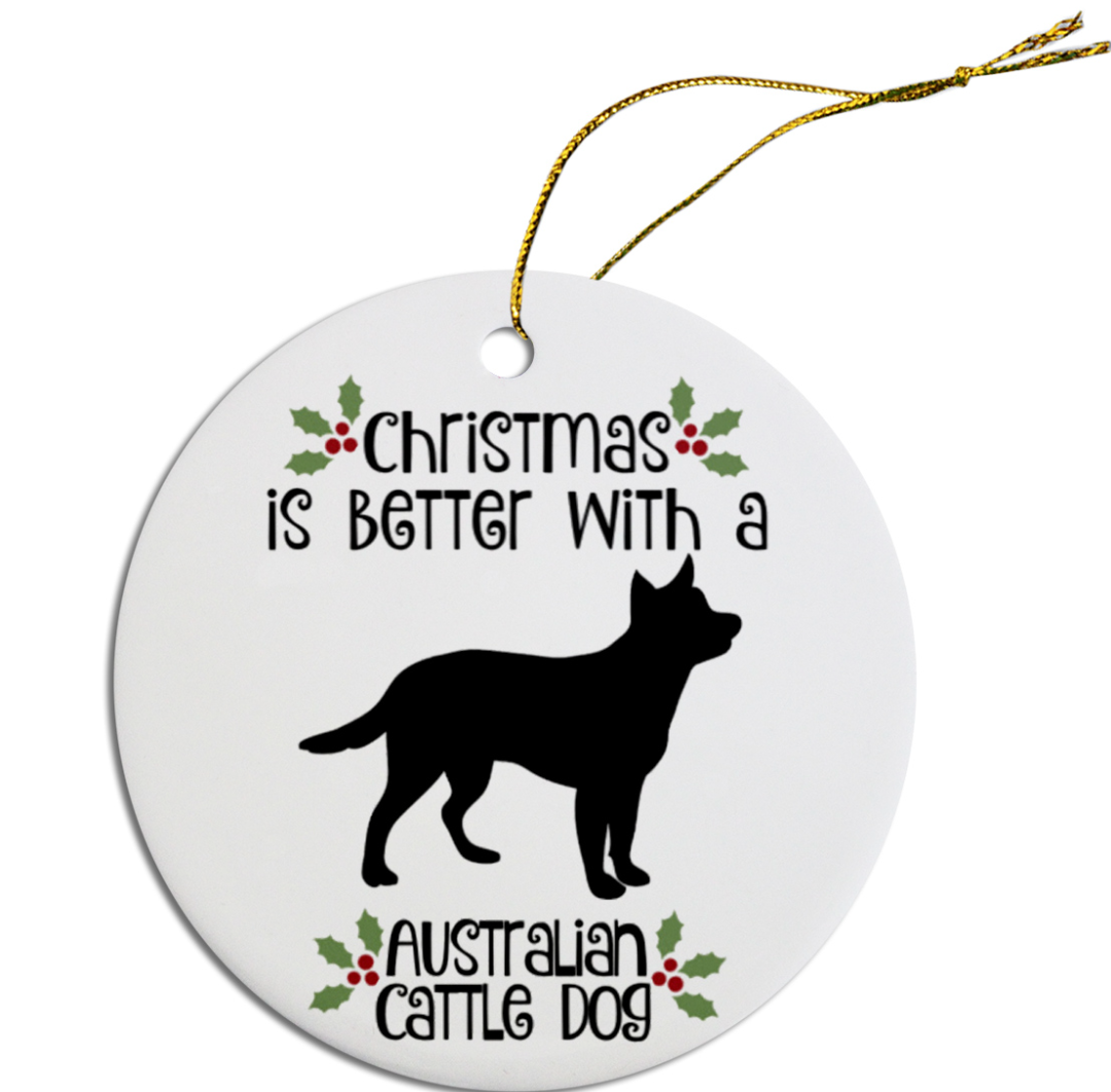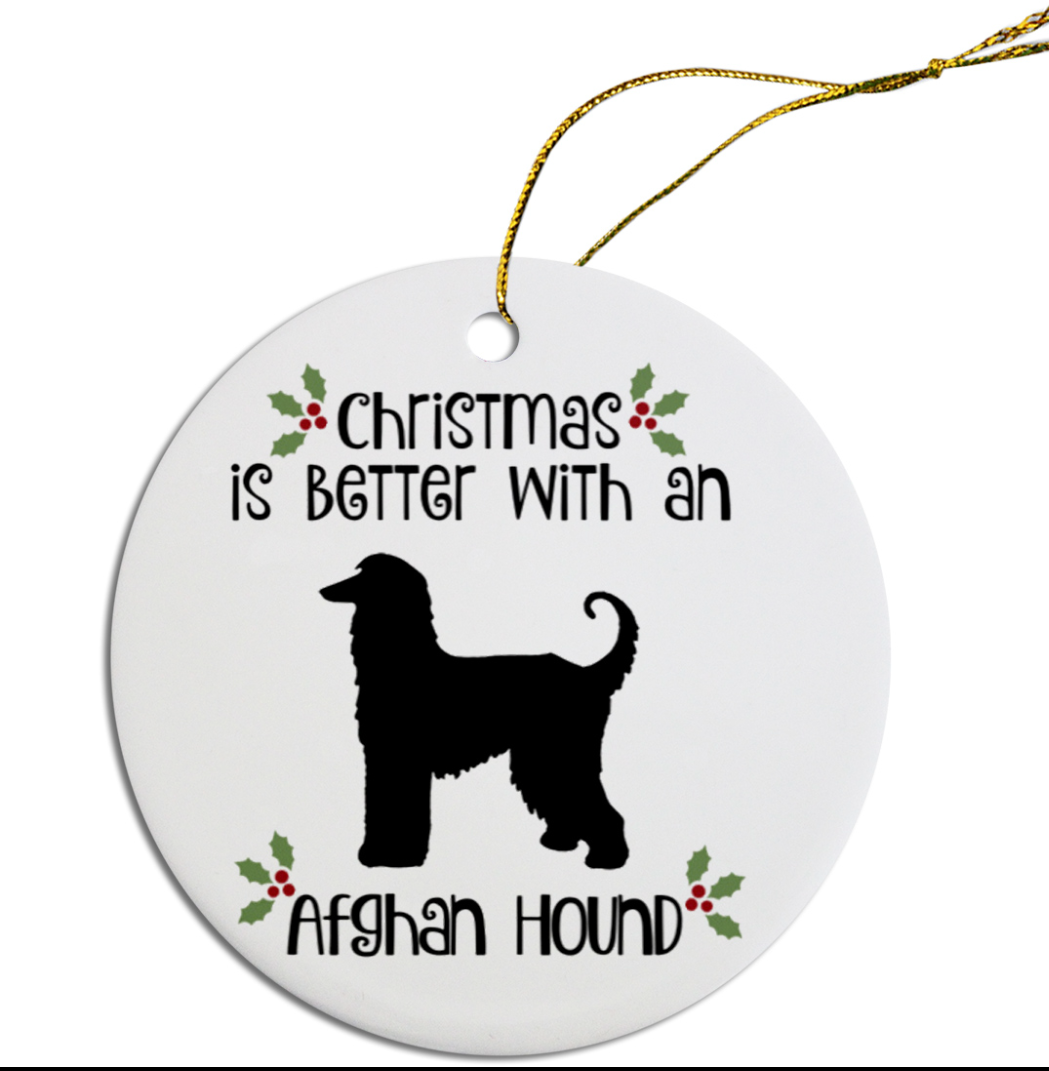These festive round ceramic ornaments are the perfect way to celebrate the holiday season with your dog. They are light weight and durable, measuring 2-1/2" in diameter. Printed in the USA.