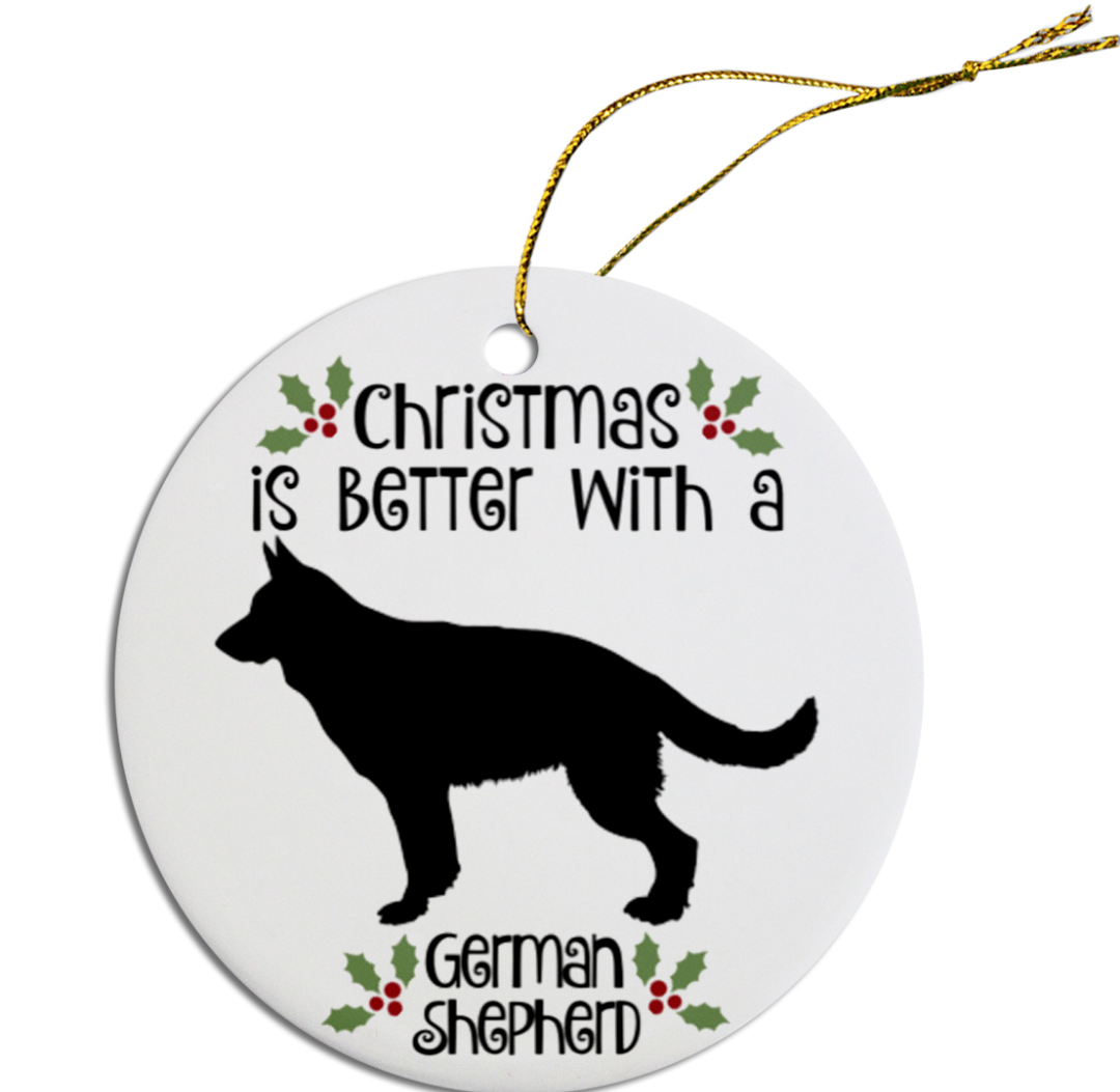These festive round ceramic ornaments are the perfect way to celebrate the holiday season with your dog. They are light weight and durable, measuring 2-1/2" in diameter. Printed in the USA.