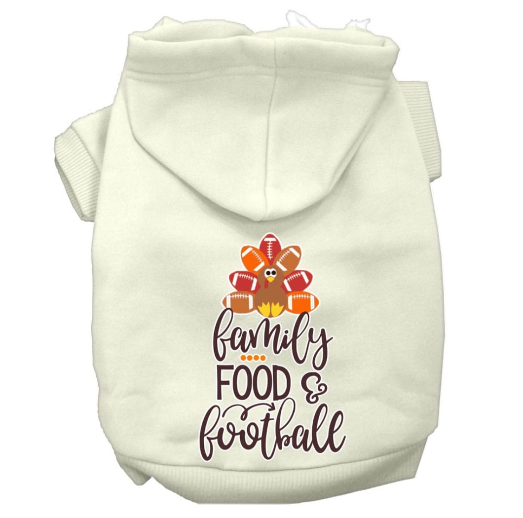 "Family Food and Football" Screen Print Dog Hoodie - White