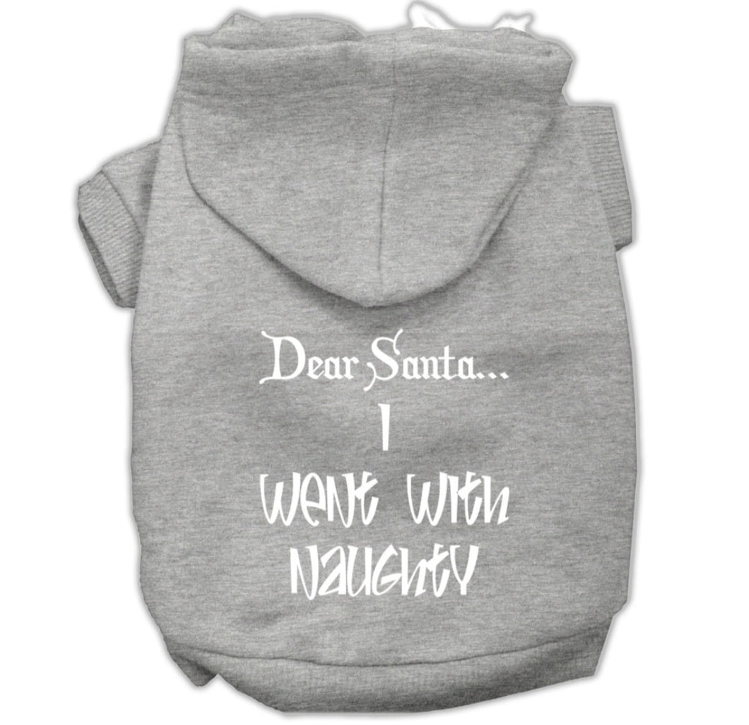 "I Went With Naughty" Screen Print Dog Hoodie - Gray